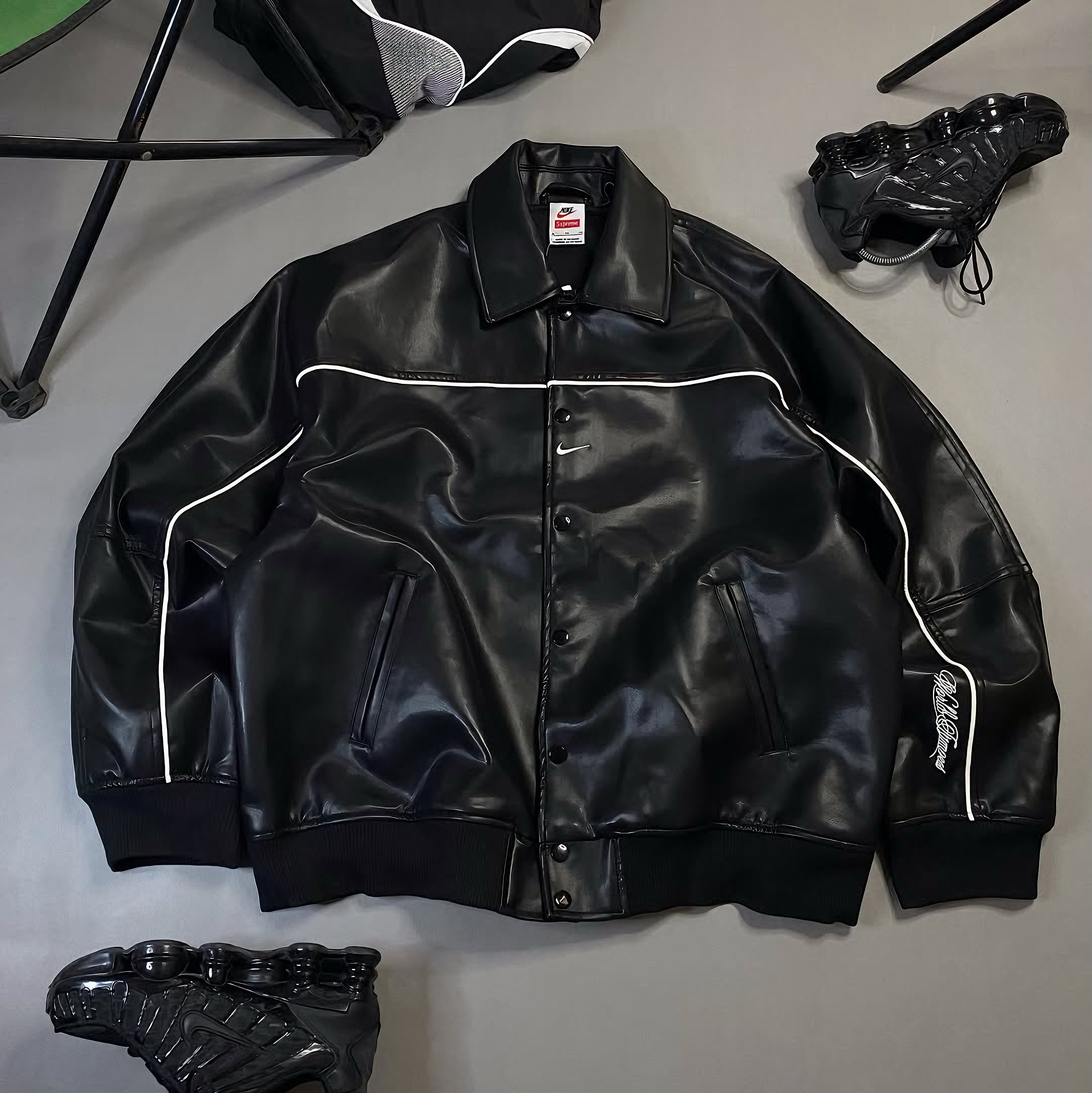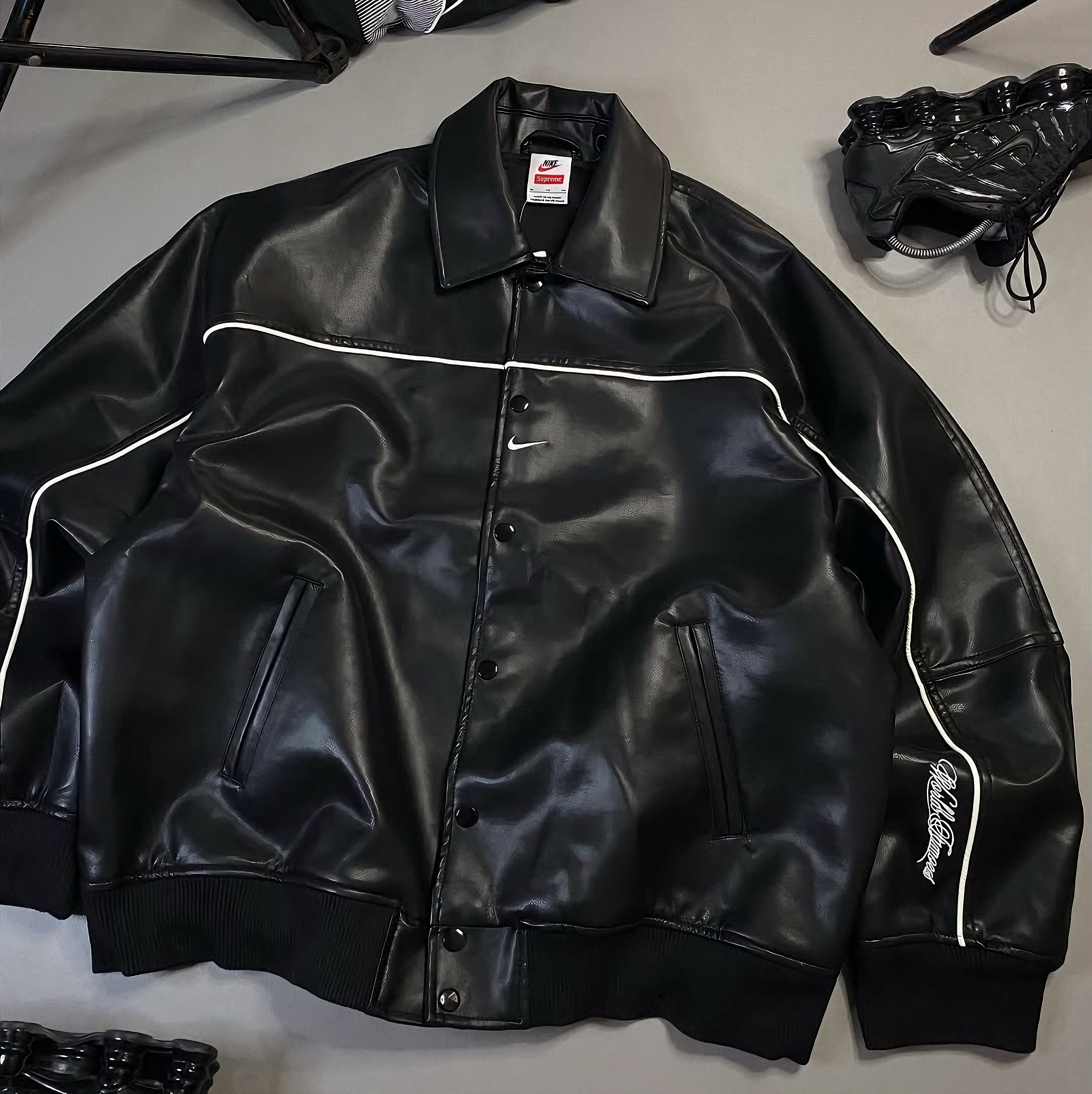 SUPREME NIKE LEATHER VARSITY JACKET BLACK